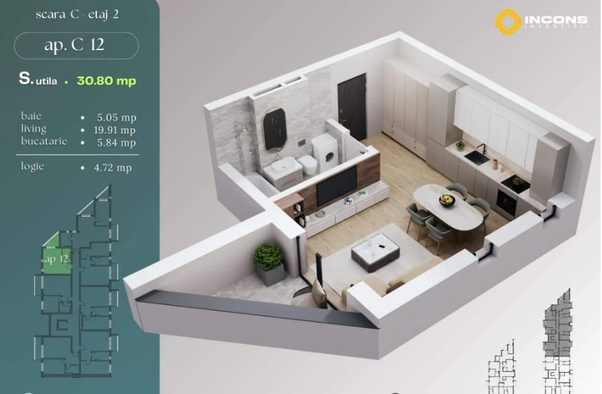 Alege dintre apartamente cu 1, 2 sau 3 camere, gândite cu atenție pentru a oferi spații aerisite, compartimentări inteligente și finisaje de calitate superioară, ce îmbină designul contemporan cu funcționalitatea.