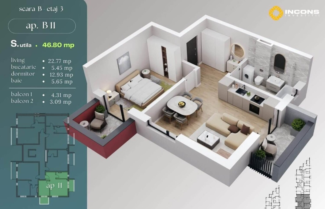 Bucură-te de rafinamentul unui cămin modern în noul ansamblu rezidențial Incons Armonia, un proiect exclusivist cu blocuri P+5 concepute pentru un stil de viață modern și liniștit.