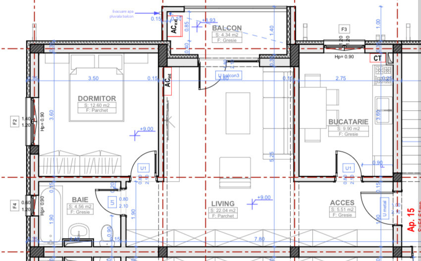 Apartamentele dispun de urmatoarea compartimentare: hol acces, bucatarie inchisa, living generos cu acces la balcon, dormitor cu balcon propriu, baie cu geam si cada sau dus.