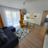 Dispune de 2 dormitoare (1 pentru copil), bucatarie complet mobilata si utilata, cu masina de spalat vase, frigider, hota, cuptor electric, aragaz.