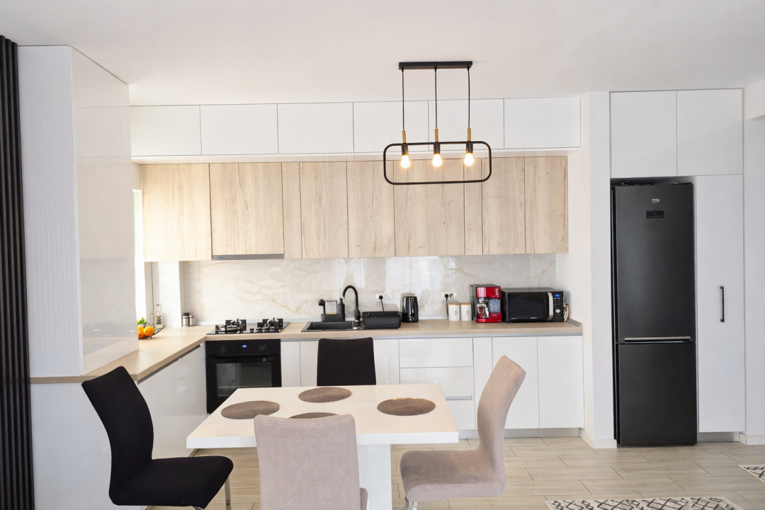 Dispune de: centrala proprie in condensatie, tamplarie pvc tripan, incalzire in pardoseala, aparat de aer conditionat, mobilier facut la comanda, electrocasnice de calitate superioara.