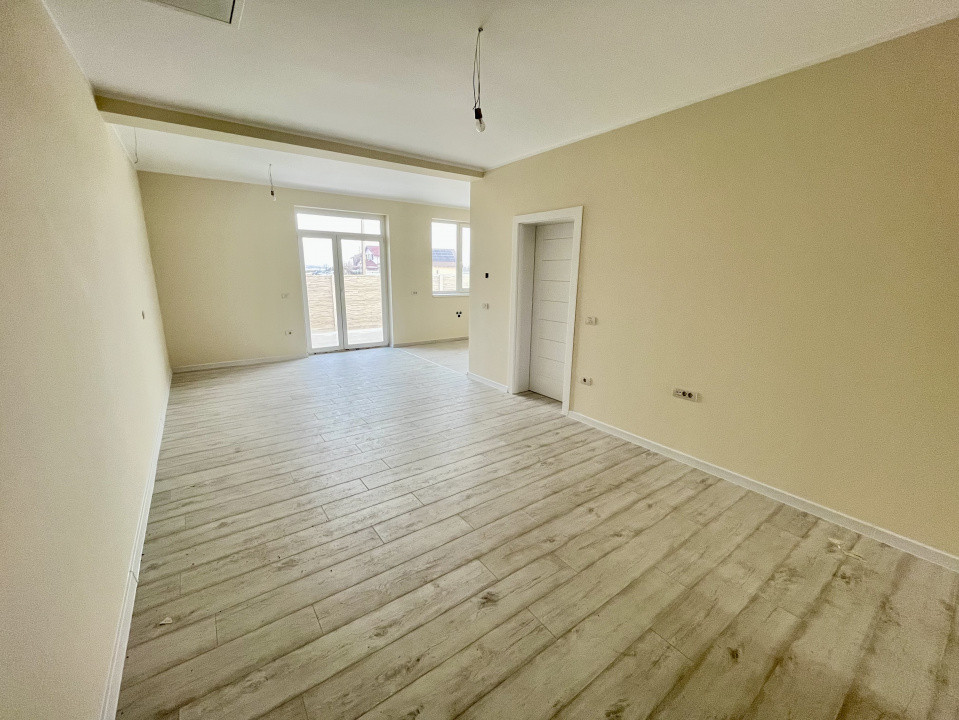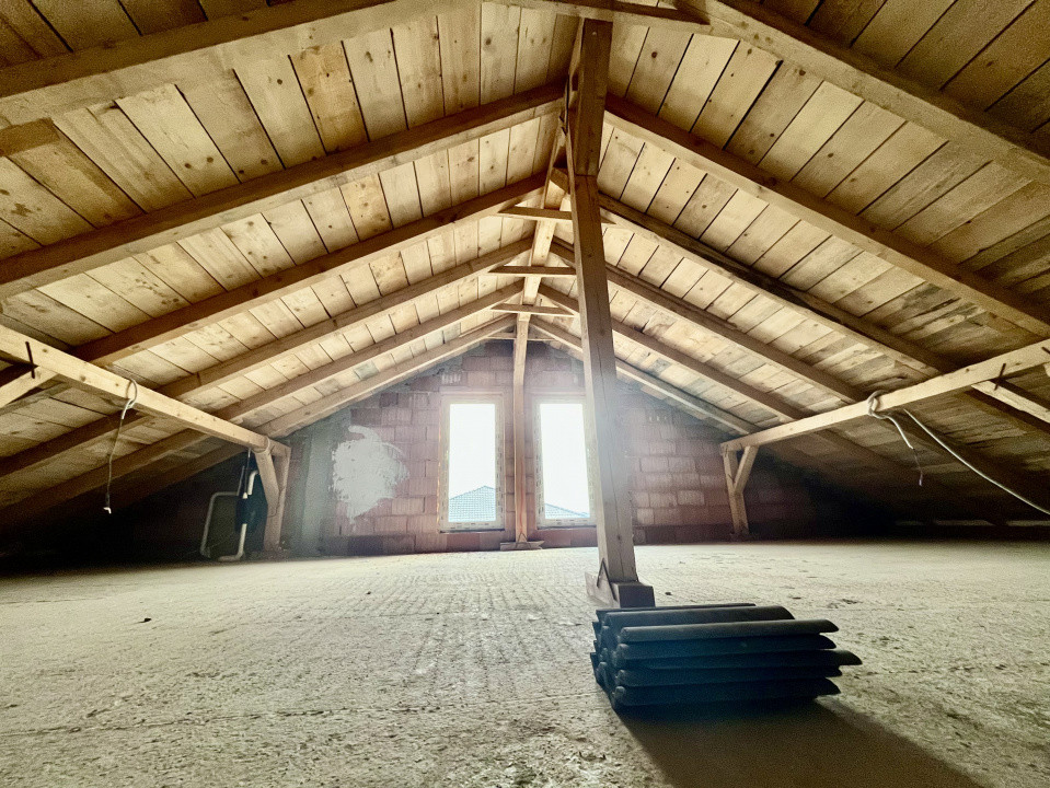 Compartimentare: hol de acces, 2 dormitoare, living generos cu iesire pe terasa, bucatarie open-space cu posibilitate de inchidere, baie, acces in pod.