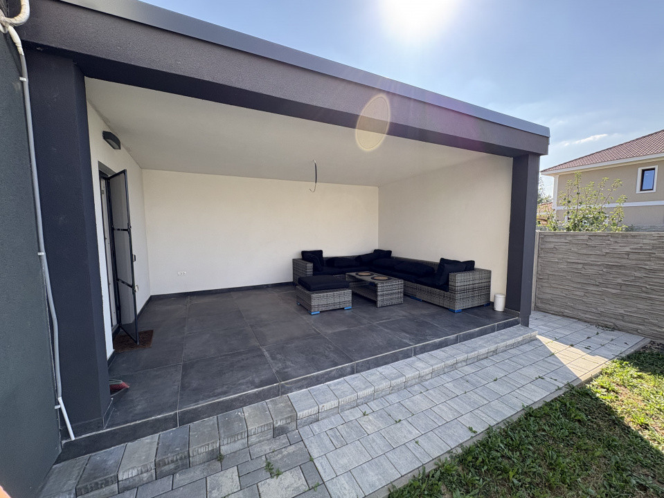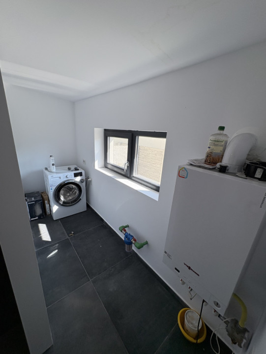 -garaj cu camera tehnica, living cu bucatarie open-space cu acces pe terasa, baie