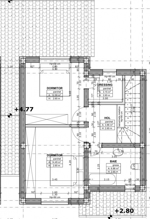 - etaj: 2 dormitoare, baie, dressing, acces in pod.