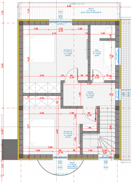 Etaj: 2 dormitoare generoase si baie cu cada.