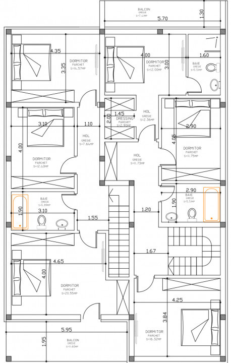 - etaj: dormitor matrimonial cu dressing, baie si balcon, doua dormitoare, baie.