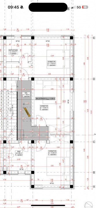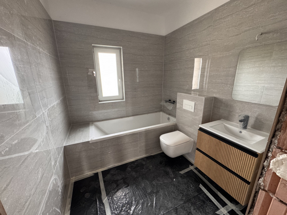 Etaj: hol, 3 dormitoare cu dresing, baie, acces in pod;