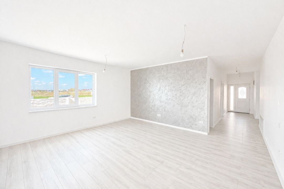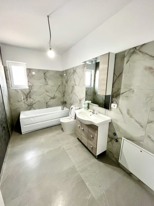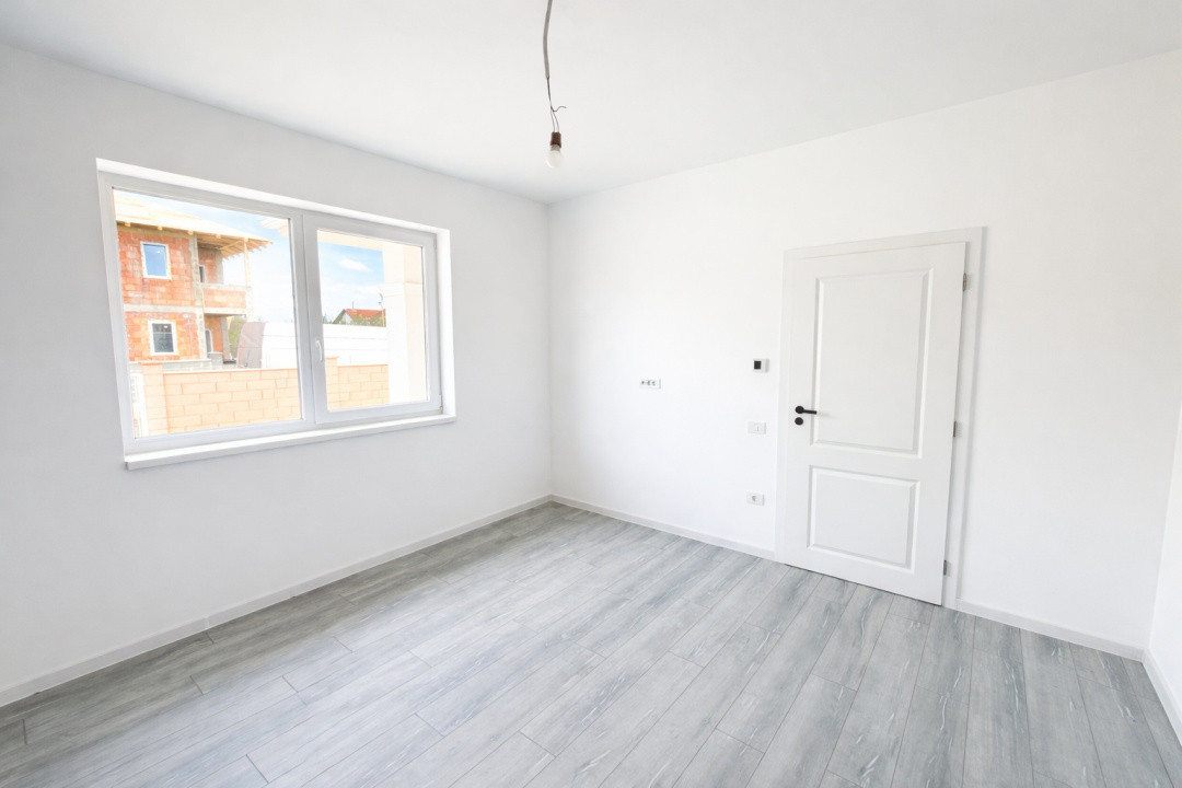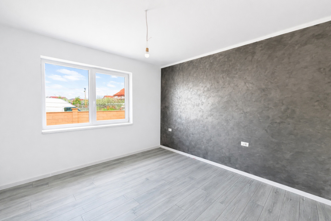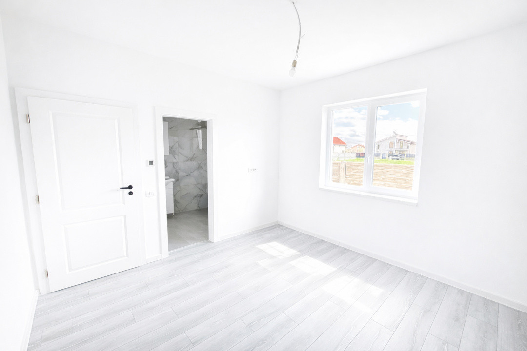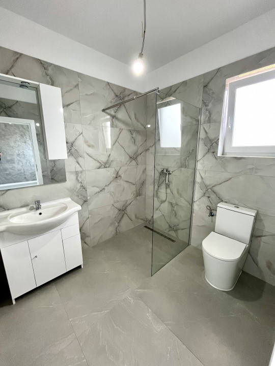 Dotari imobil: centrala termica proprie Ariston One, incalzire in pardoseala, termostate ambientale, tamplarie PVC tripan, aparatj electric Gewiss, usi interior Porta Doors, glafuri exterioare din granit, placa de beton peste parter, alei pietonale si parcaj auto din pavaj.