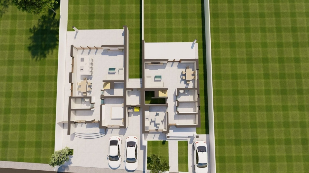 -parter: hol acces, living cu acces pe terasa, bucatarie inchisa, camera tehnica, camara, baie;