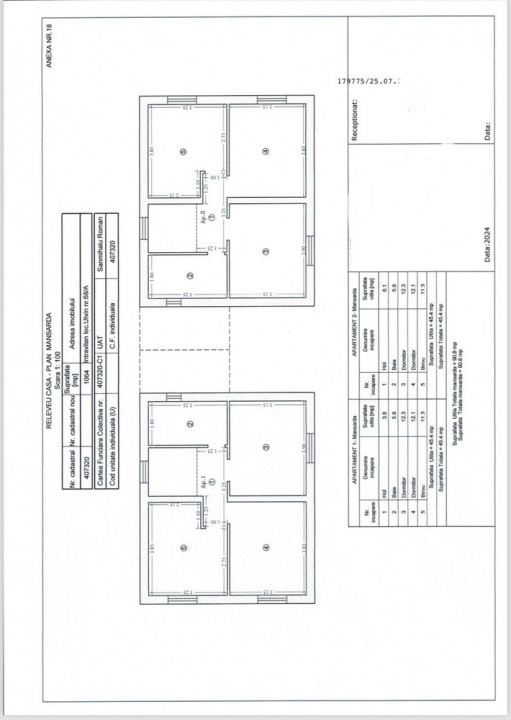 Mansarda : hol, 3 dormitoare, baie cu cada, pod deasupra mansardei.