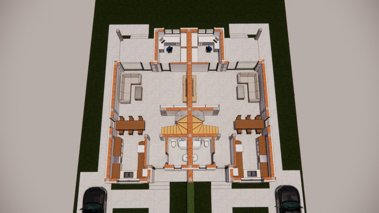 - parter: hol de acces, living generos cu iesire pe o terasa acoperita, bucatarie open-space, dormitor/birou, baie, spatiu pentru depozitare;