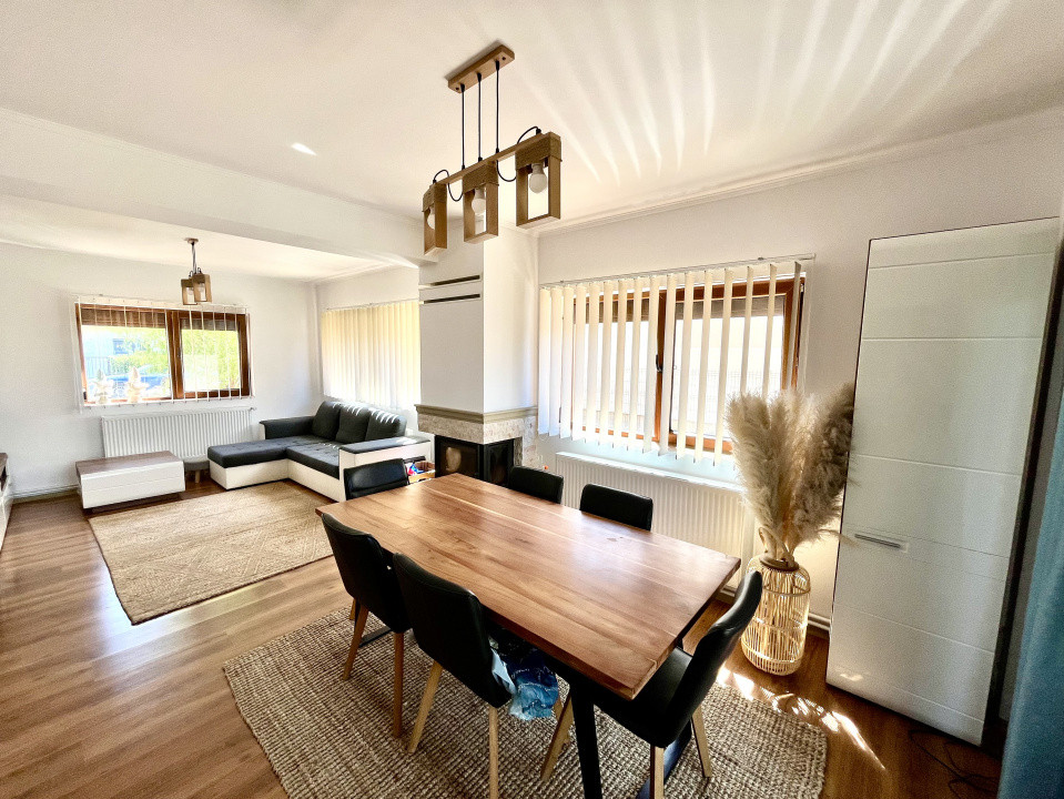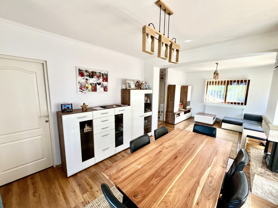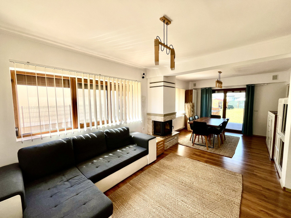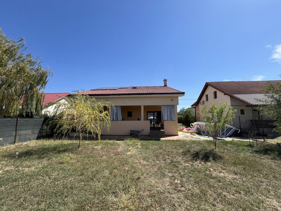 Dotari imobil: centrala termica proprie pe gaz, incalzire in pardoseala si pe calorifere, tamplarie PVC cu rulouri exterioare, panouri fotovoltaice cu baterie de 10 KW, semineu, curent trifazic, izolatie exterioara cu polistiren, sistem de irigatie in curte, alei din beton amprentat.