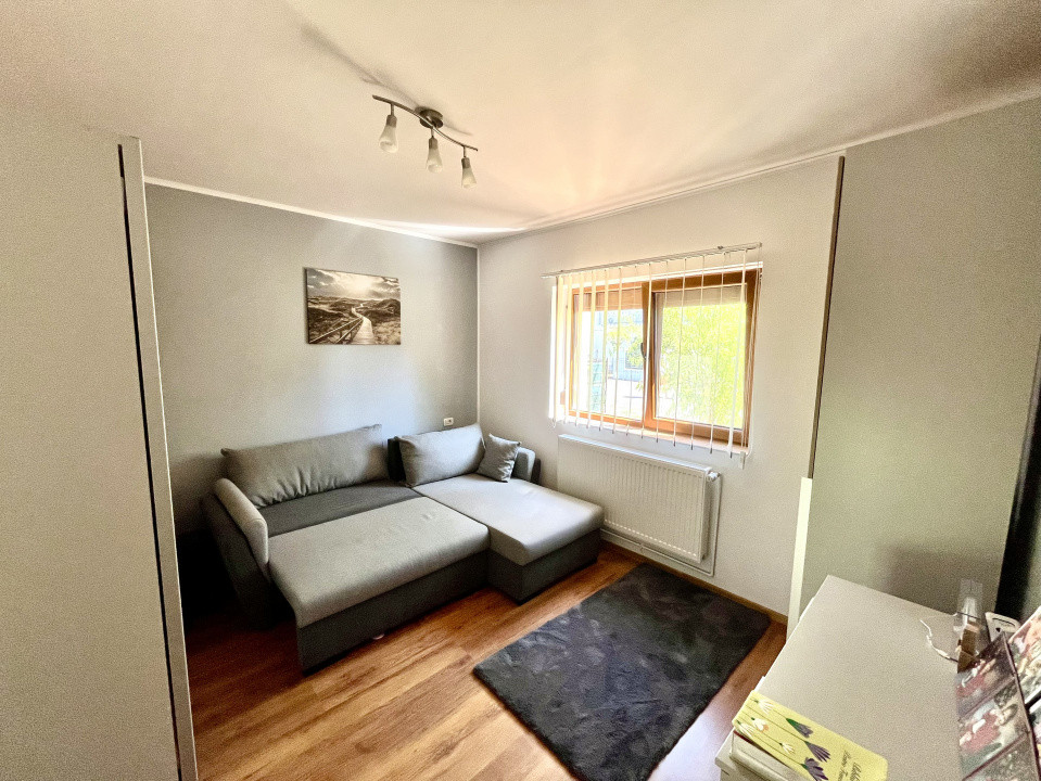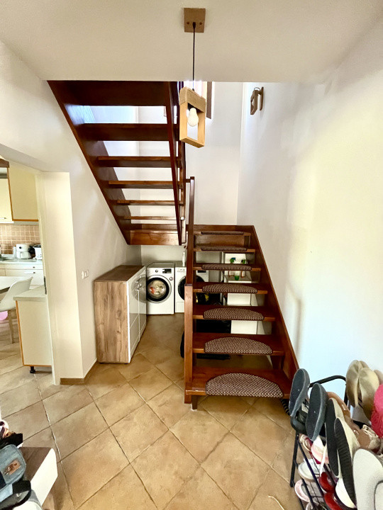 - parter: hol de acces, living generos cu iesire pe o terasa acoperita, bucatarie inchisa, dormitor/birou, baie, spatiu pentru depozitare;