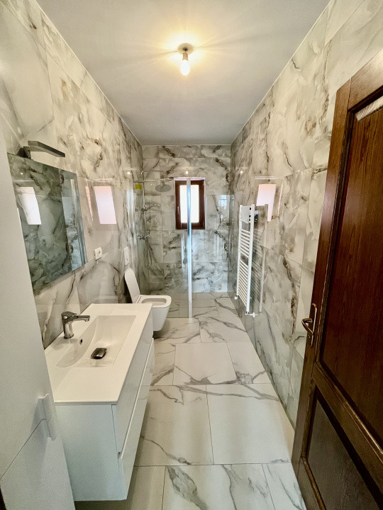 Dotari imobil: centrala termica proprie, incalzire in pardoseala, tamplarie PVC tripan Salamander cu rulouri exterioare, panouri fotovoltaice 15 KW, glafuri din marmura.