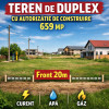 Se oferă spre vânzare teren intravilan cu suprafață totală de 659 mp, având front stradal generos de 20 metri liniari, ideal pentru construcție duplex.